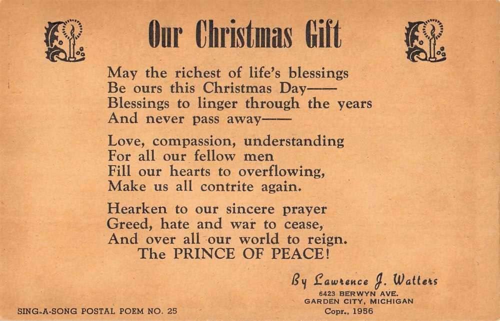 Garden City Michigan Christmas Gift Poem Antique Postcard K99417
